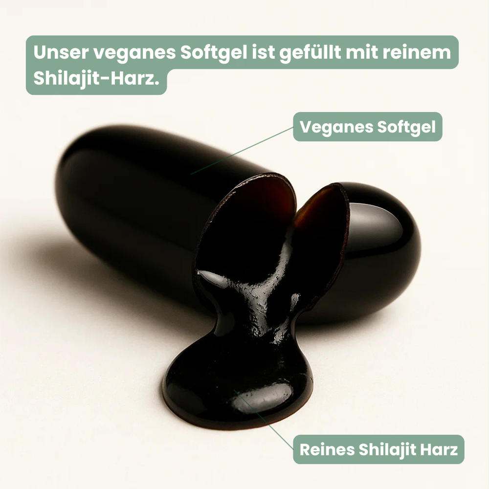 Die Softgel-Form ist aus pharmazeutischer Sicht eine der besten Möglichkeiten, Shilajit einzunehmen, präzise dosiert, hygienisch und einfach in der Anwendung.