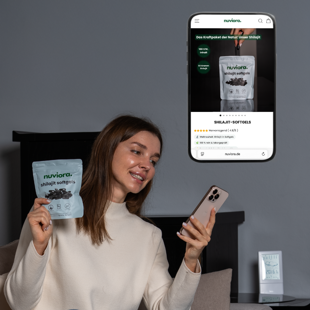 Ihr Fazit: „Die Shilajit Softgels von nuviora. überzeugen durch Reinheit, Qualität und geprüfte Herstellung.“
